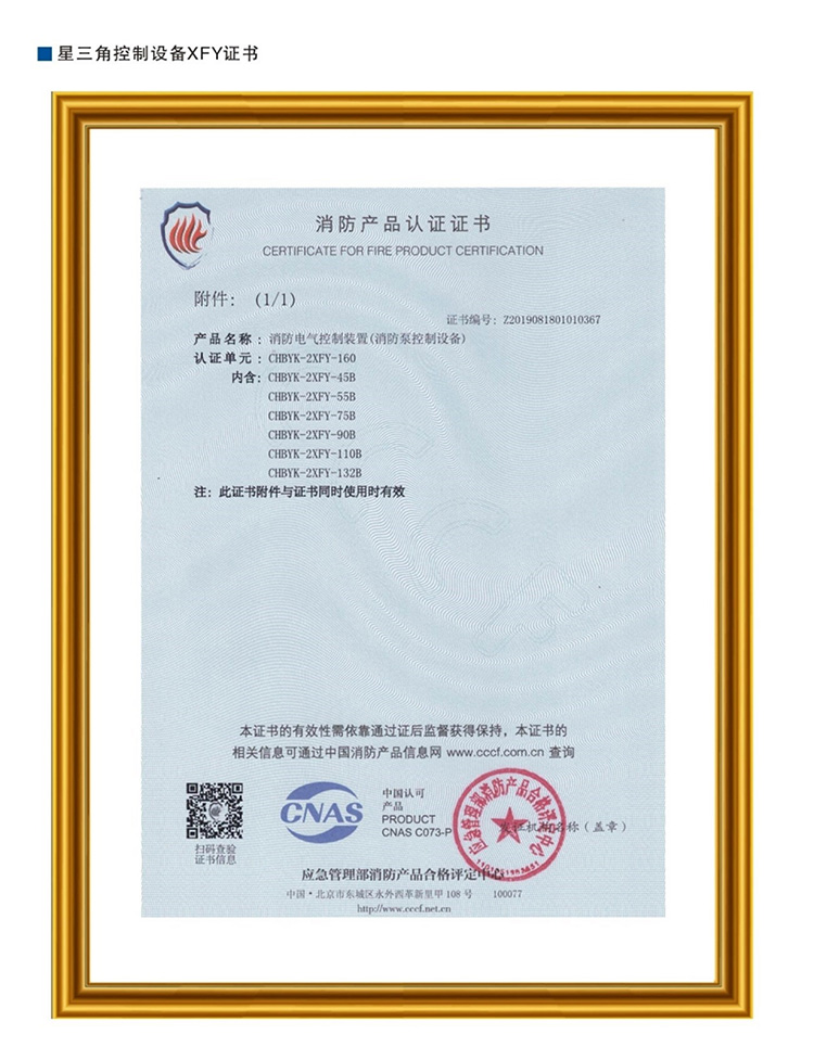 星三角控制设备XFY证书