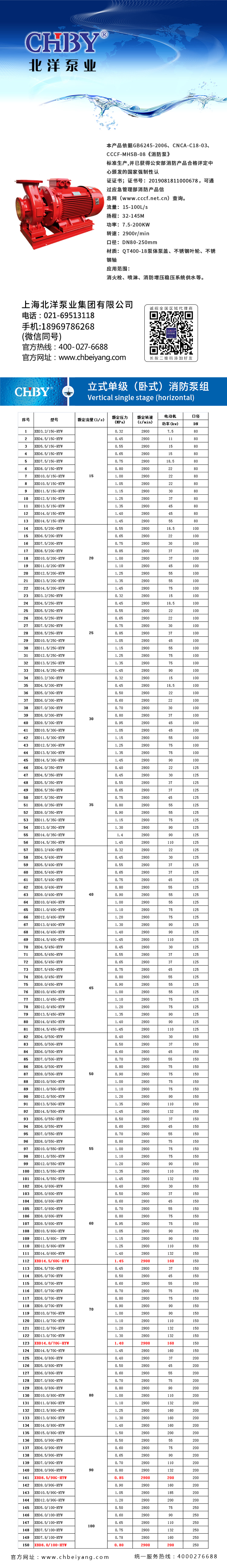 北洋泵业厂家直销XBD3.2/15G-HYW卧式单级消防泵组(40个型号)